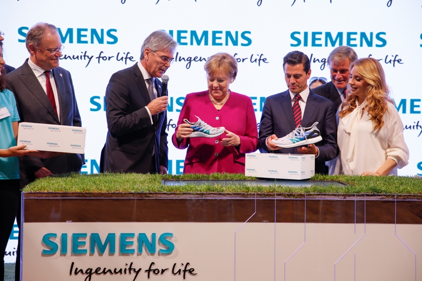 西門子股份公司總裁兼首席執行官凱颯(Joe Kaeser)向德國總理默克爾和墨西哥總統培尼亞贈送運用西門子技術制造的運動鞋 在本次漢諾威工業博覽會上,西門子還將展示其在云應用開發方面的創新。西門子將與客戶和合作伙伴一起,在MindSphere體驗區展示MindSphere 3.0版本的最新更新與應用程序。此外,作為MindSphere Open Space Challenge(MindSphere開放空間挑戰)的一部分,外部開發者與初創公司將攜手進行開放式合作,共同創造基于MindSphere的新型客戶解決方案和商業模式。 西門子在漢諾威工業博覽會上還展示了面向未來的數據驅動應用——例如,Siemens Industrial Edge概念,這一邊緣計算解決方案可以使用戶完全控制數據,并從其擴展功能和出色的現場性能中獲益。在增材制造領域,西門子展示了其無縫集成的產品組合和西門子增材制造網絡。在西門子增材制造網絡這一線上市場中,供應商、3D打印解決方案的現有及潛在用戶等不同參與者都可以建立并確定商業伙伴關系。