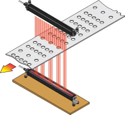 MYD系列測量光幕由發光器和接收器組成,發光器發出的光直射到接收器,形成光幕系統。放置在發光器和接收器之間的目標物體將會阻擋一部分光線使其不能射到相應的接收器器件。MYD系列測量光幕使用同步掃描來識別被擋的通道。首先一個發光器通道發出光脈沖而對應的接收器同時來尋找該脈沖,當找到后即完成一個通道的掃描,接著轉向下一個通道,直到所有的掃描都完成。當一個周期掃描完成后,系統記錄哪些通道通光,哪些通道被遮擋,根據系統定義輸出一個信號,該信號可以的模擬量信號,也可以是開關量信號。